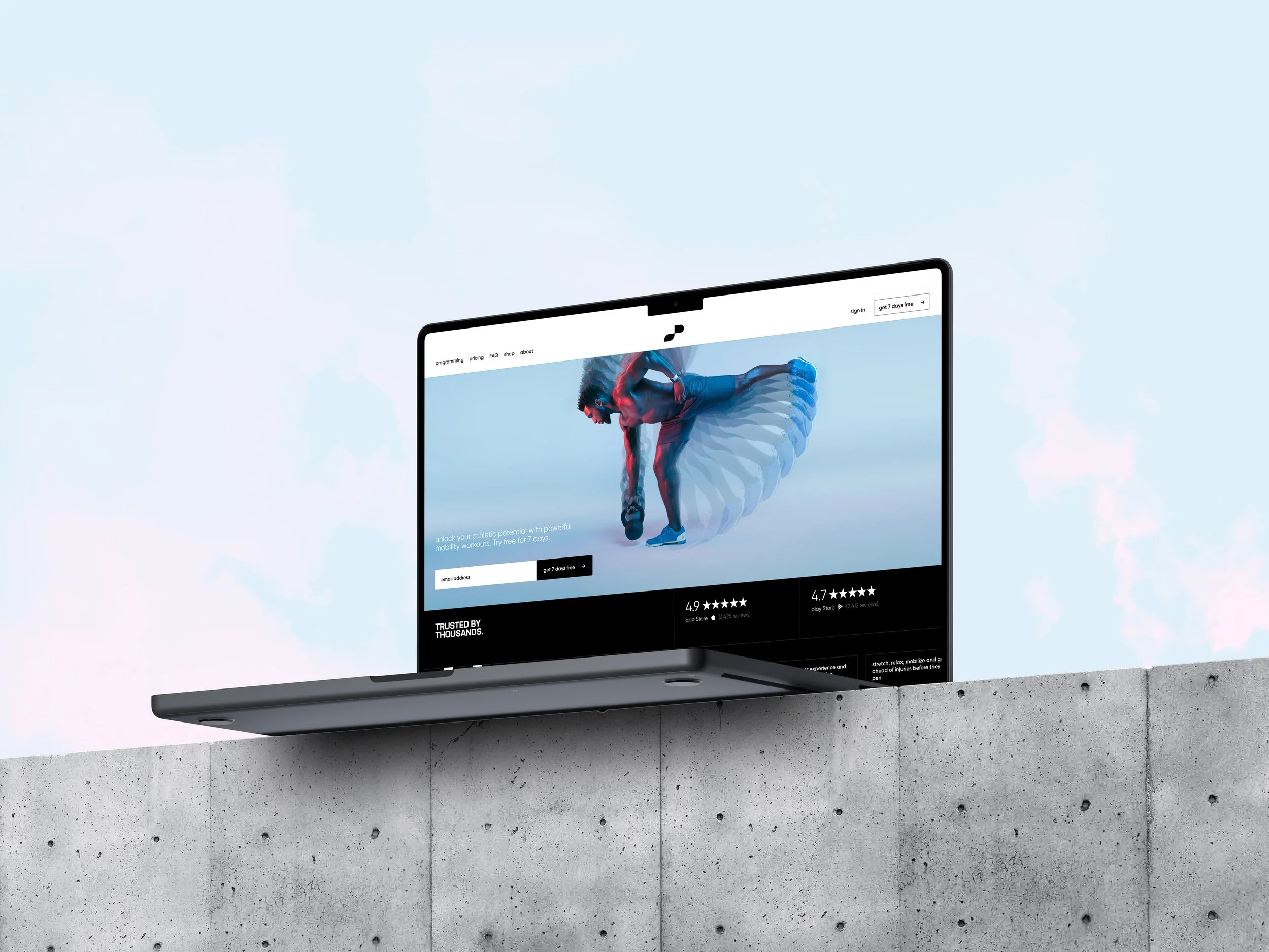 Our visual identity work for pliability® involved rebranding Romwod, a Crossfit-centric fitness app. Pliability® wanted to serve a wider functional fitness audience interested in improving their flexibility. We delivered visually striking creative with sleek and modern branding across app, web, custom and uniquely generated visuals and illustration all coming together in a full suite of marketing assets.
