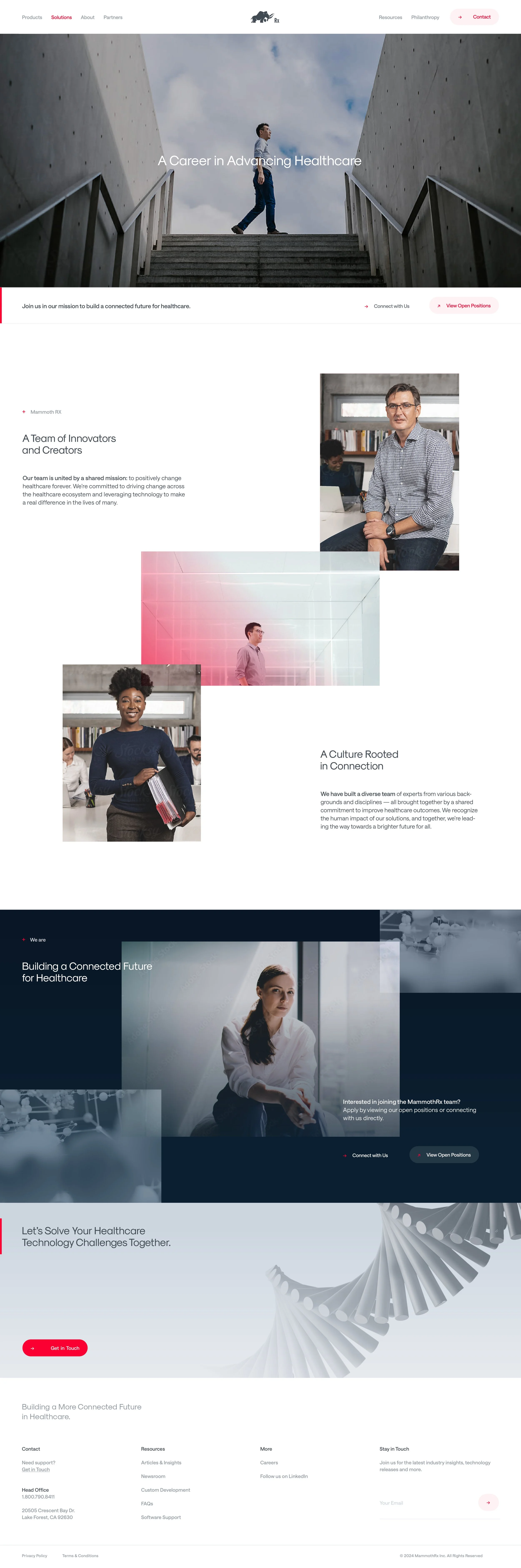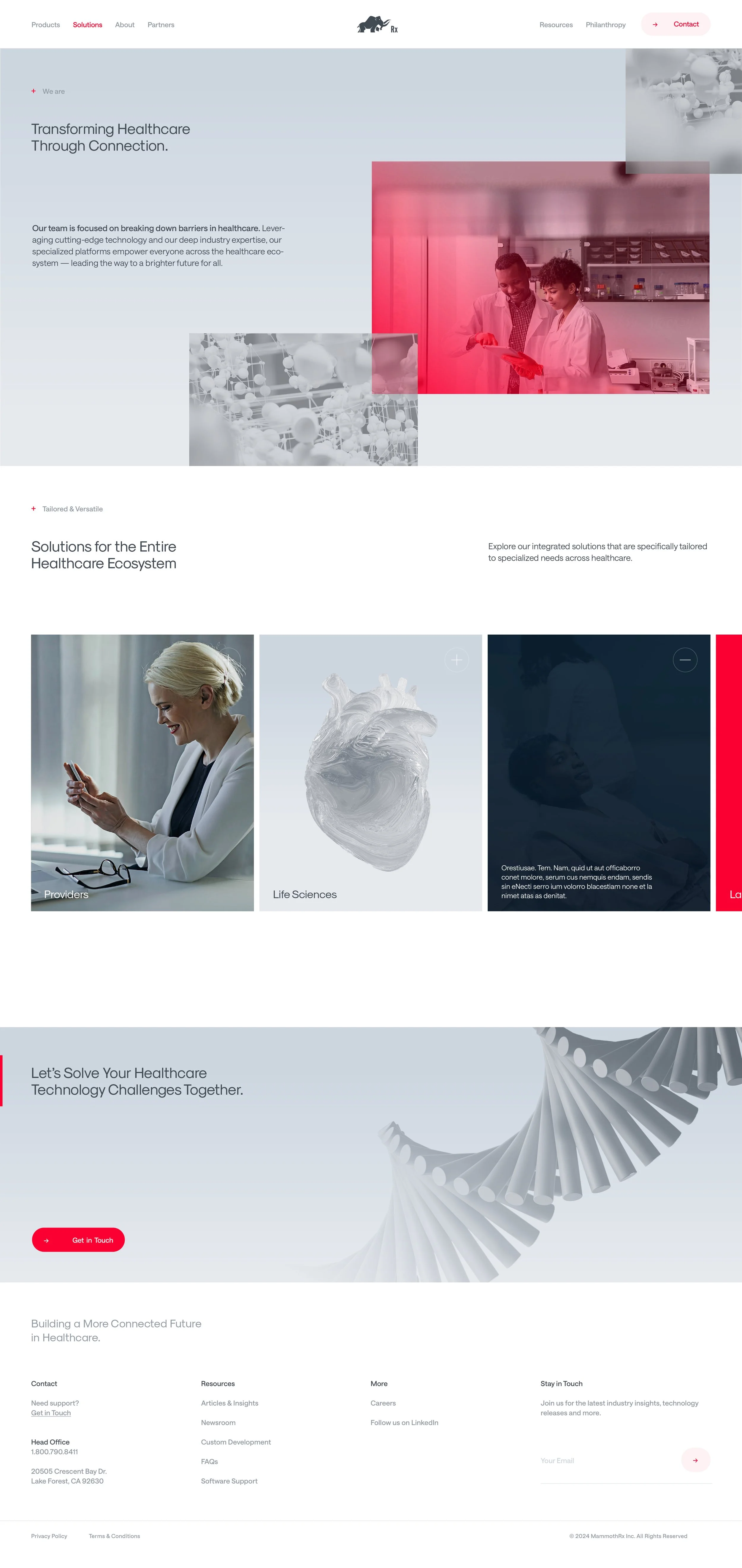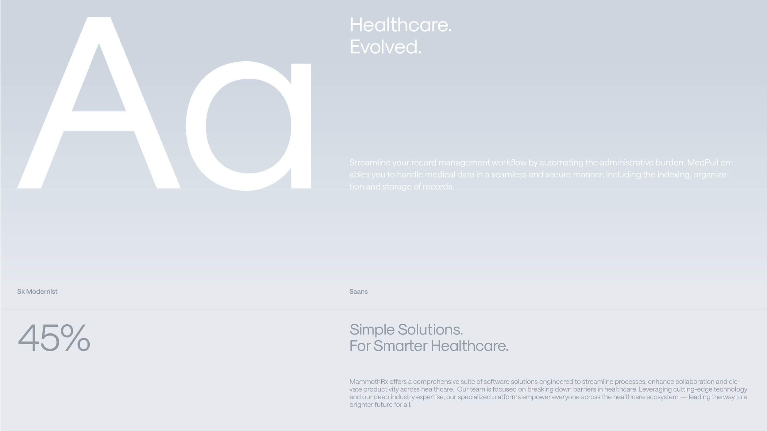 We worked with Mammoth RX® to update their brand and website design – positioning them as a respectable international player in the SaaS field of healthcare. With a modern take on Swiss design, driven by a strong use of color and a carefully curated pool of imagery and CGI illustrations we crafted a brand profile that merges technology and medicine in a future-forward package. Themes of connectivity and integration are found throughout and conceptually visualise the impact of their software solutions on the world of healthcare.