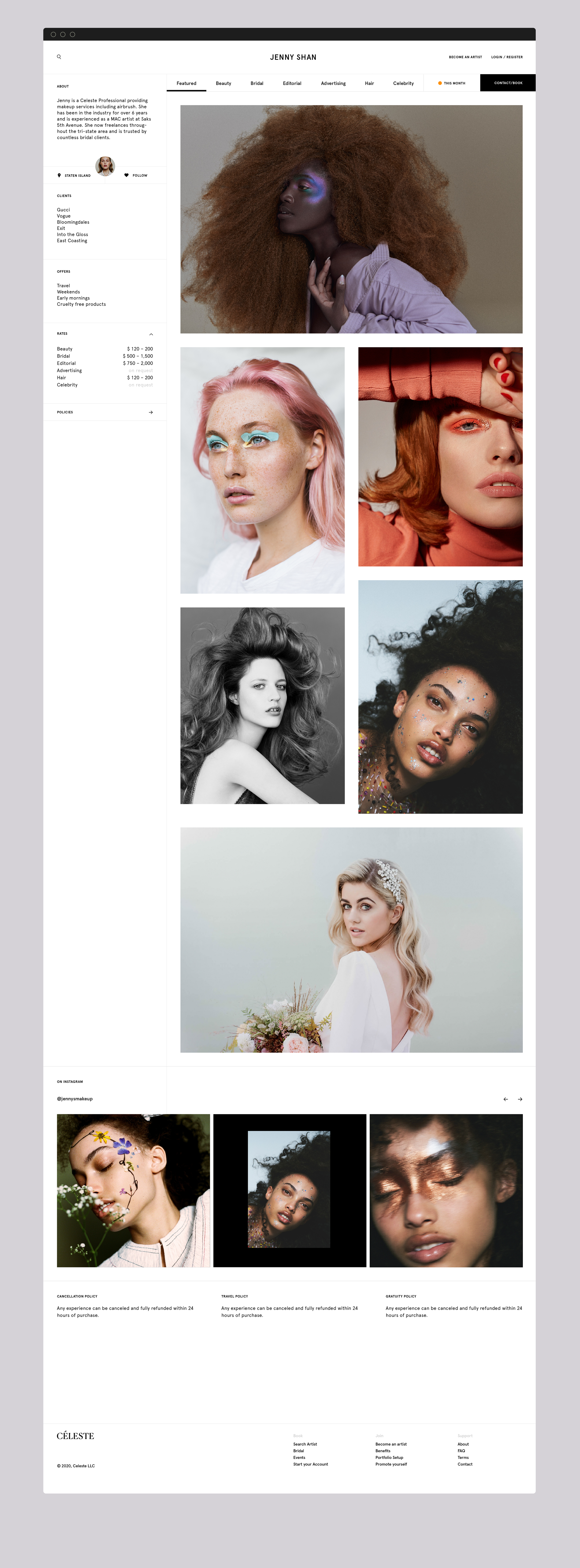 Céleste is a beauty platform with the goal of connecting make-up artists with their clients and further connections and culture in that space.